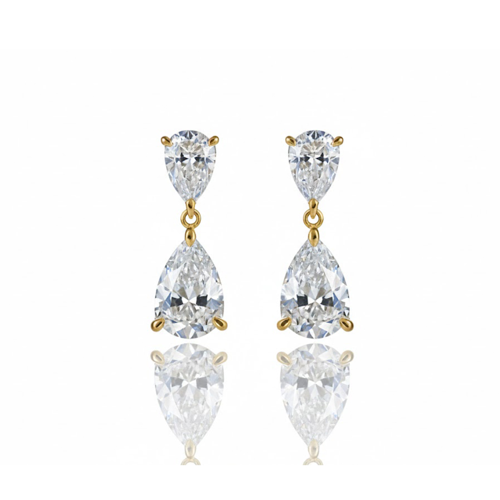 18ct yellow gold diamond set drop earrings. Laboratory grown pear shapes, D-F VVS1-VS2. 2.14ct total.